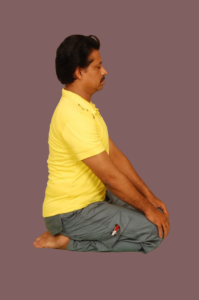 - விரிப்பில் முட்டி போட்டு அமரவும்.